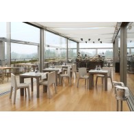 Chaise empilable design en polyéthylène, pensée pour les espaces collectifs.