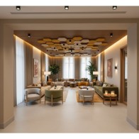 TRIUMS a été conçu pour intervenir là où les volumes deviennent complexes à traiter : plafonds hauts, espaces ouverts et zones à forte résonance. Suspendu au plafond, ce panneau acoustique permet de corriger le confort sonore sans encombrer les murs, tout en apportant une écriture visuelle forte. Sa légèreté et sa modularité facilitent la mise en place sur de grandes surfaces.