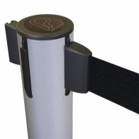 Poteau à sangle rétractable (3m), en acier inoxydable peint noir. Matériel de qualité supérieure, fabriqué en Europe.