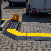 Protection pour pieds d'échelles contre les chocs et collisions. Fixation au sol par platine.